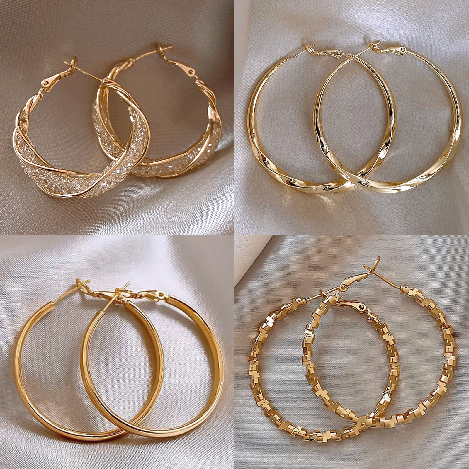 ZEGL真柳麻花大耳圈耳环法式圈圈耳饰女秋冬复古爆款素圈耳坠耳钉