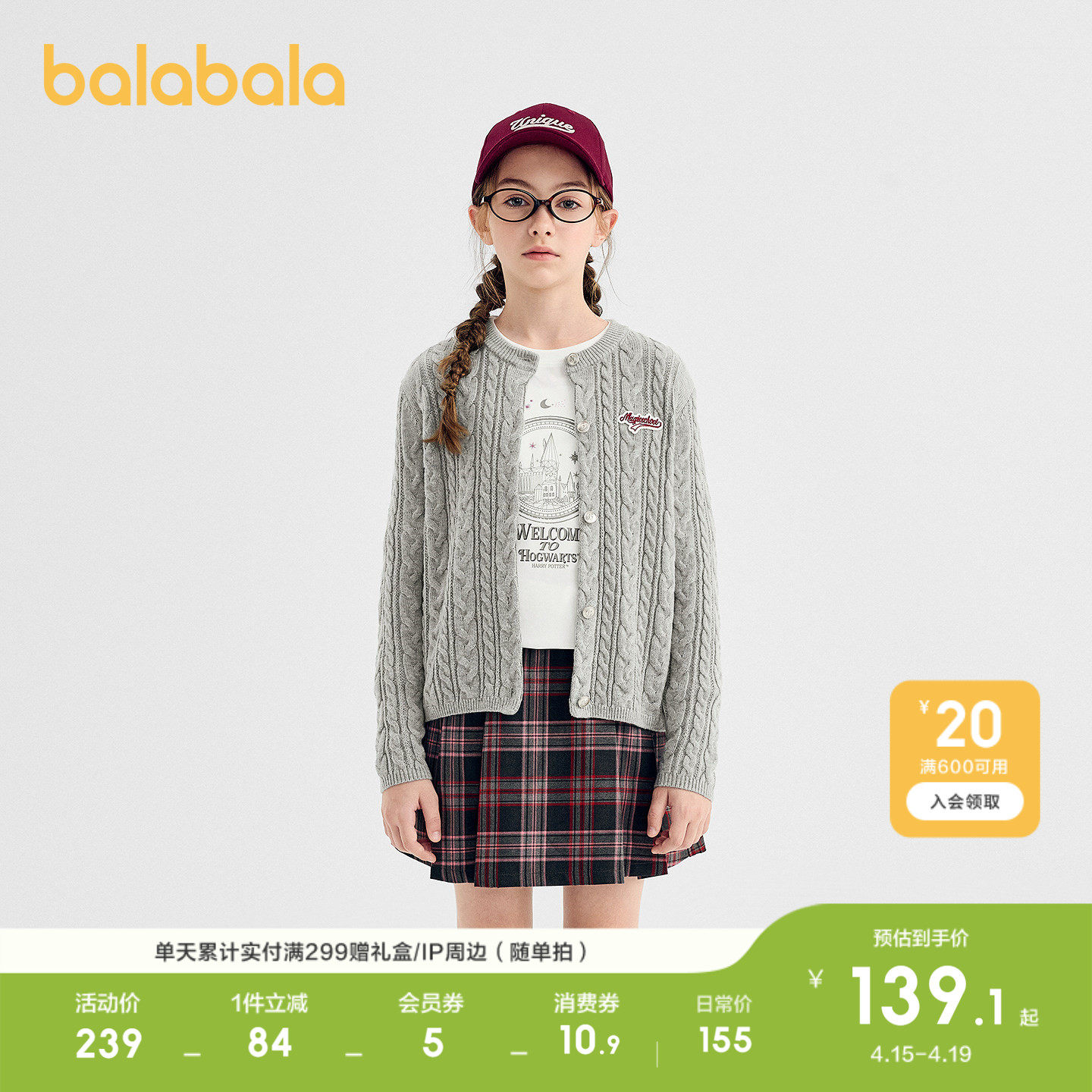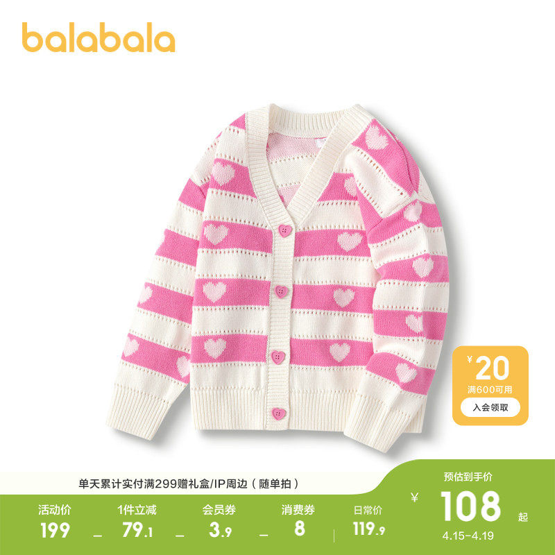 巴拉巴拉童装儿童毛衣女童2026春秋针织衫开衫毛衫线衣百搭上衣潮