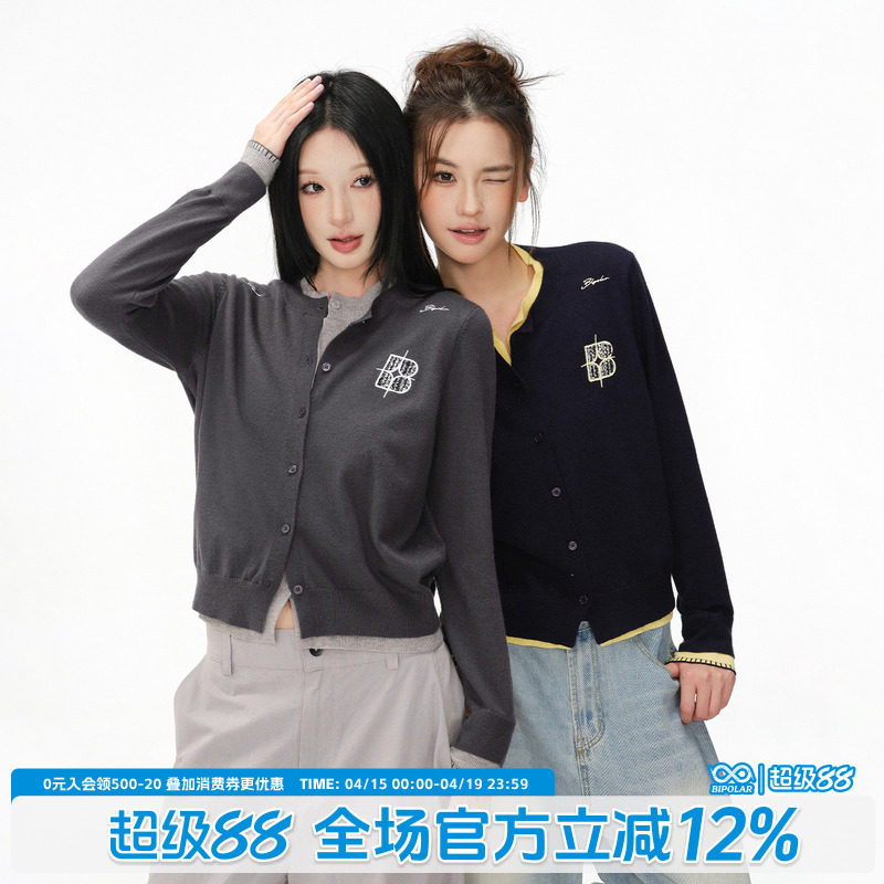 BIPOLAR 假两件开衫毛衣春秋圆领复古美式学院风青春潮流针织上衣