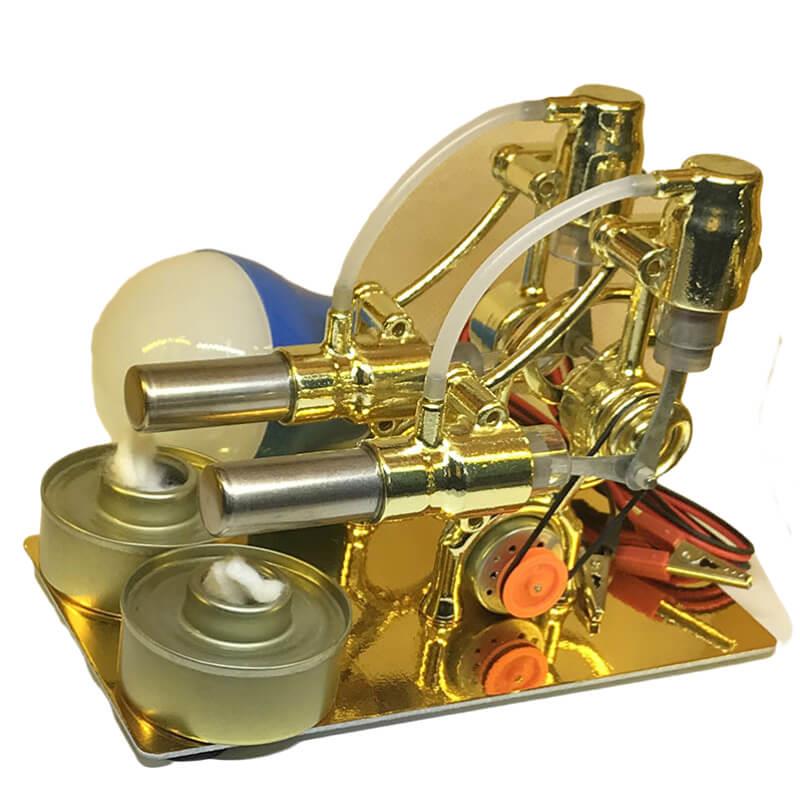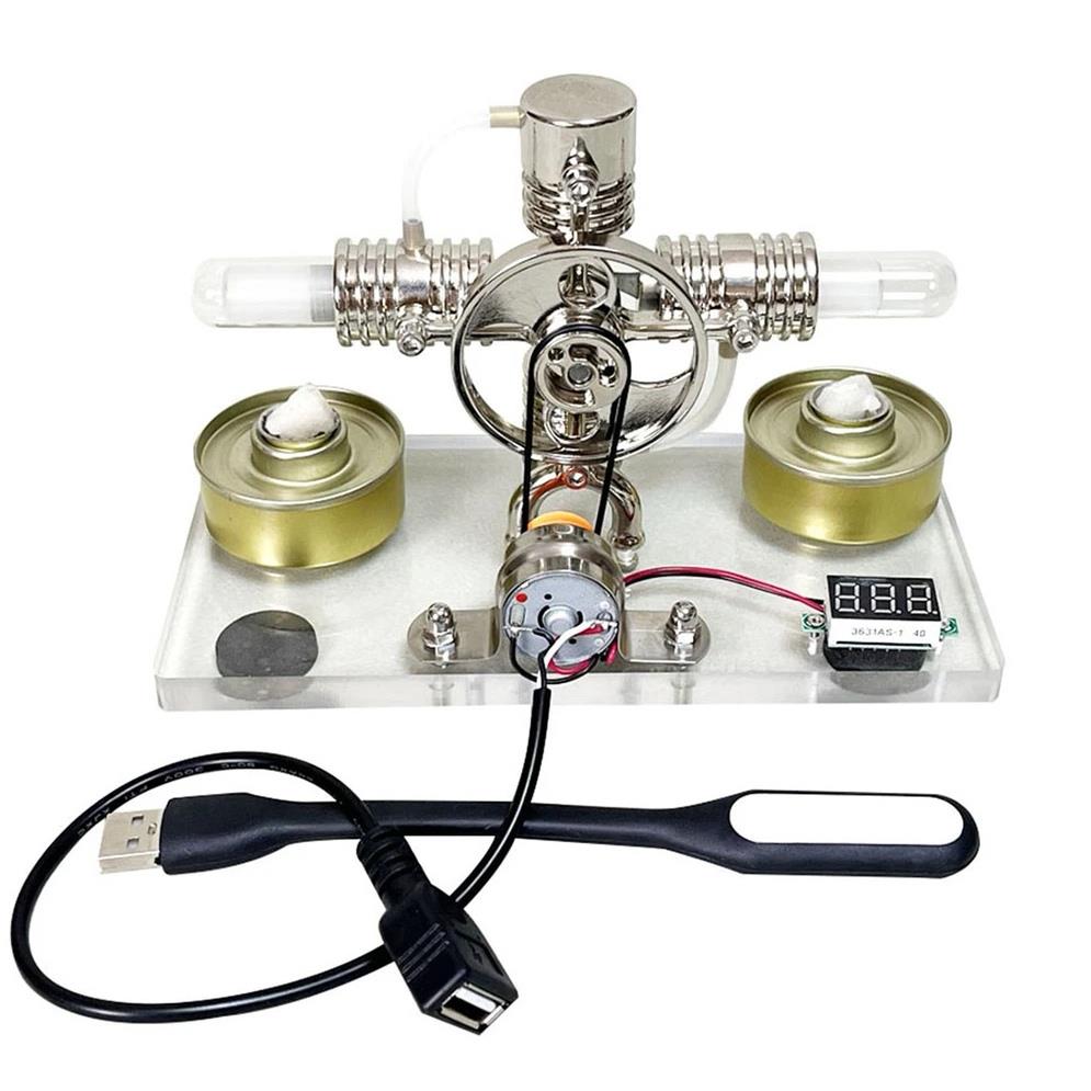 罗桥双缸发动机斯特林发电蒸汽机物理实验科学小制作发明玩具模型