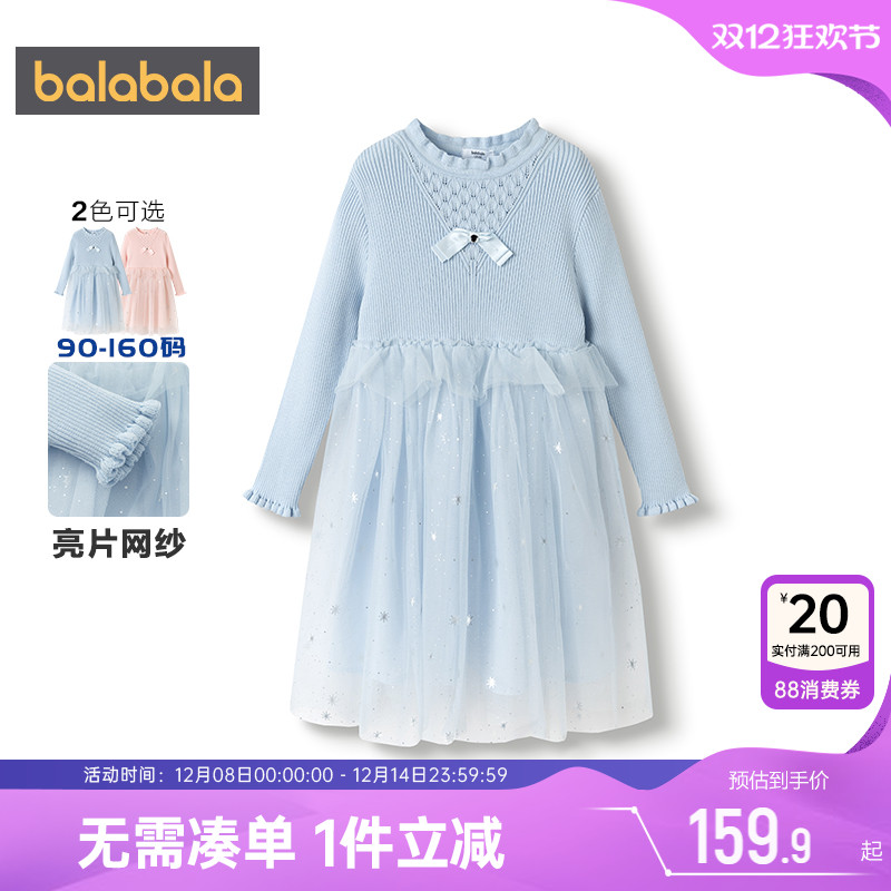巴拉巴拉女童连衣裙宝宝网纱裙子秋冬季新款童装儿童洋气公主打底
