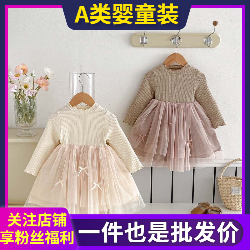 女童连衣裙冬装2025新款洋气儿童打底针织毛衣裙小女孩网纱公主裙