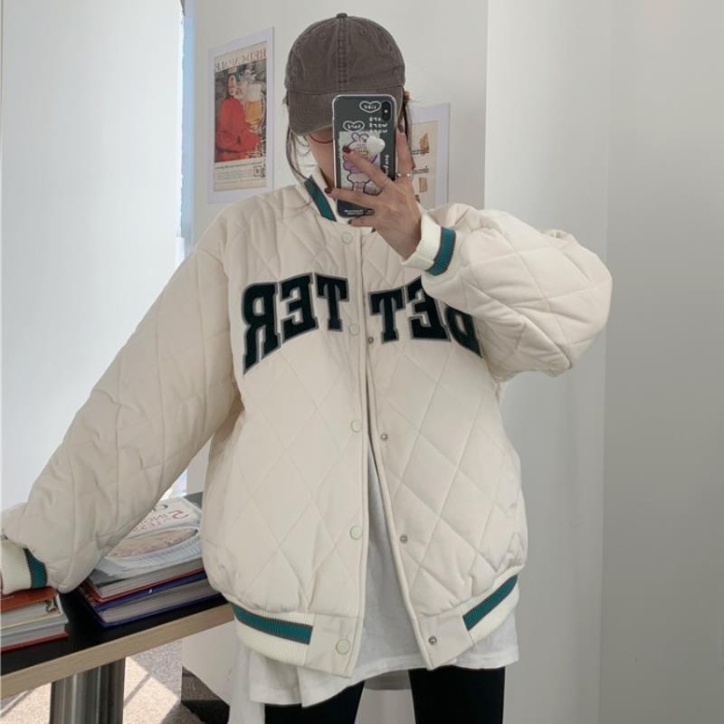 棒球服棉服加厚女夹棉秋冬学院风外套宽松韩版情侣装原宿风外套潮