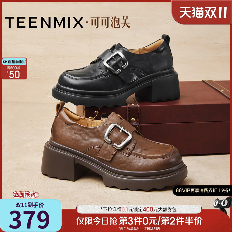 天美意厚底乐福鞋复古单鞋女休闲小皮鞋子春夏新款CNG11AA4奥莱