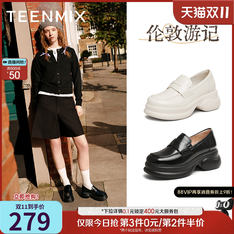 天美意厚底增高英伦乐福鞋复古单鞋女休闲皮鞋2025秋新款COQ01AA5