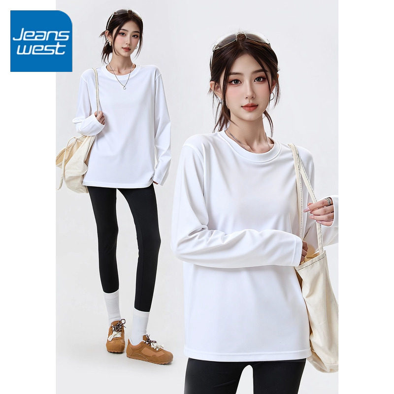 NOA真维斯新款白色长袖T恤女春秋纯色内搭打底衫简约百搭纯白上衣