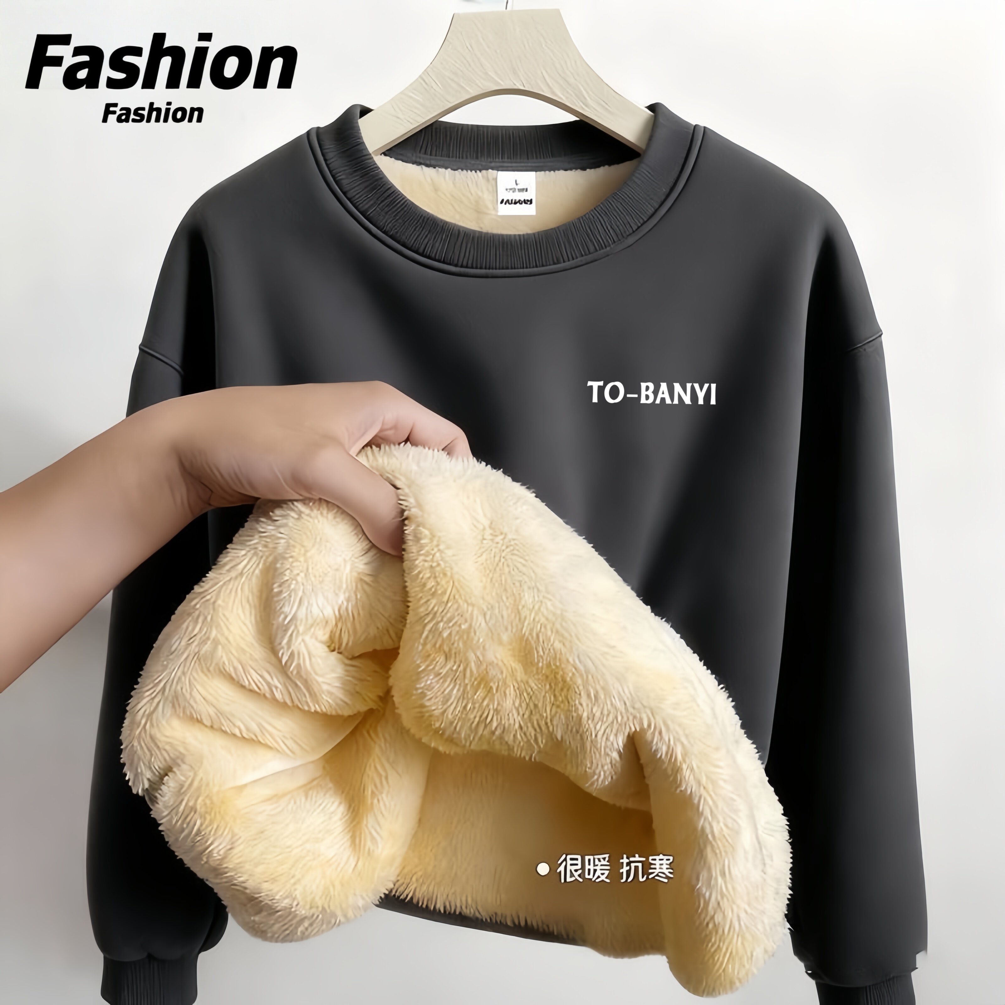 - 圆领加绒卫衣男大码
