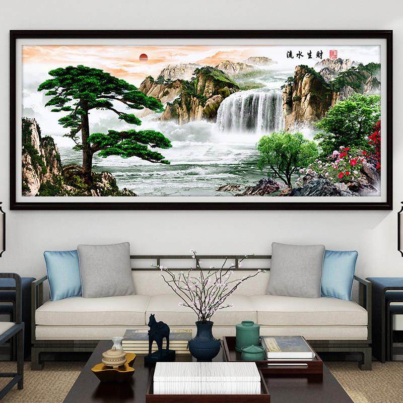 5d钻石画满钻客厅迎客松风景山水画流水生财十字绣2024新款钻石绣