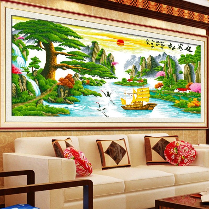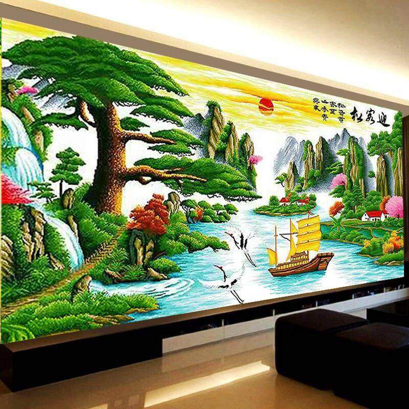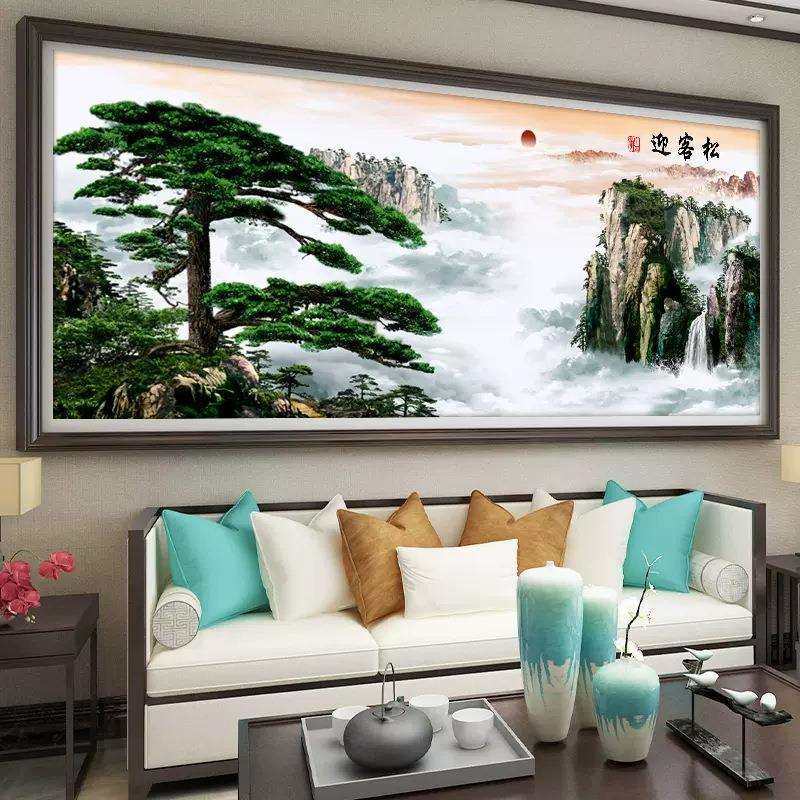 迎客松钻石绣贴十字绣5d钻石画满钻新款客厅2026山水风景沙发背景