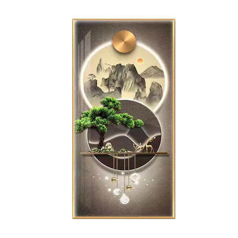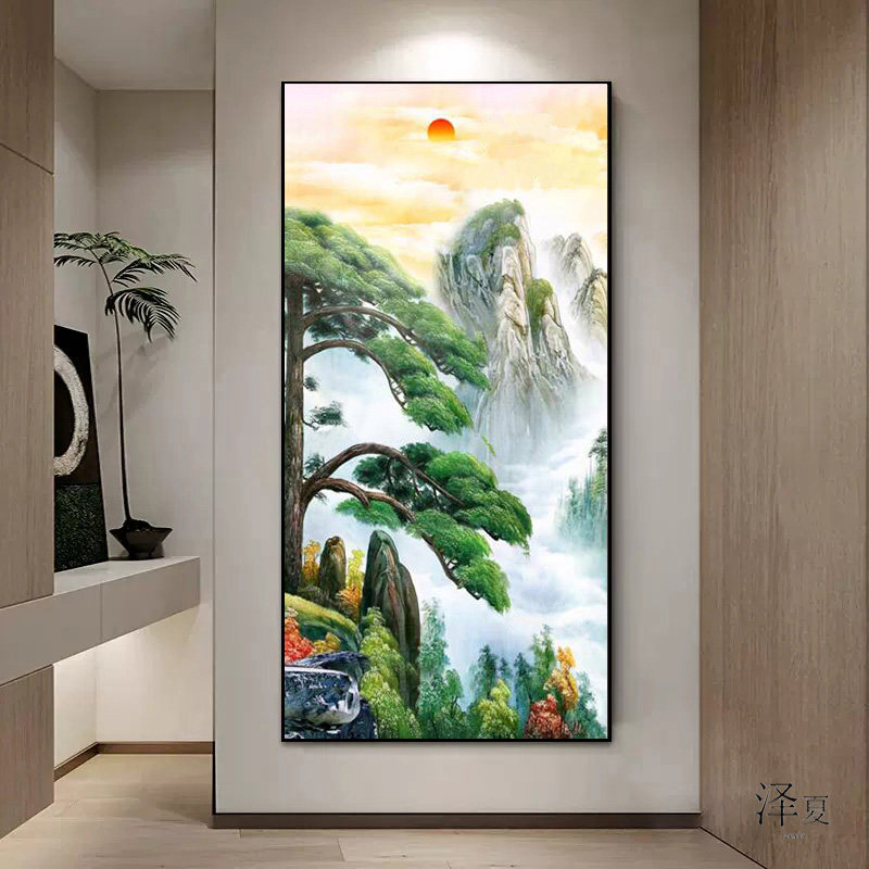 十字绣粘贴水晶钻5D新竖版走廊过道迎客松钻石画满钻全贴水晶钻高