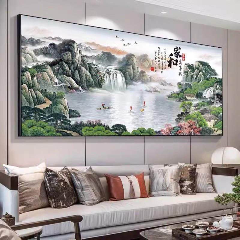 客厅钻石画家和万事兴山水风景流水生财迎客松贴钻十字绣新款全贴