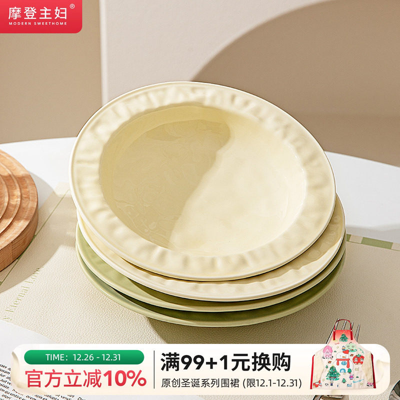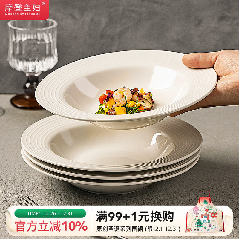 摩登主妇陶瓷盘子家用菜盘高级感意面深盘西餐餐盘2025新款草帽盘