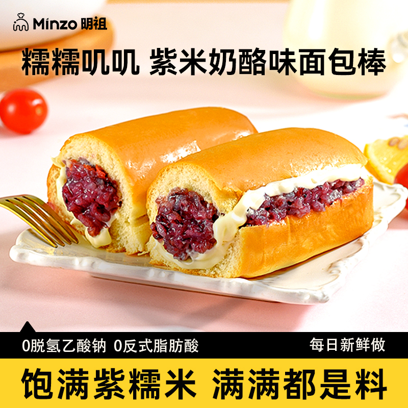 【百补】明祖紫米面包棒奶酪夹心吐司长条黑糯米糕点早餐学生零食
