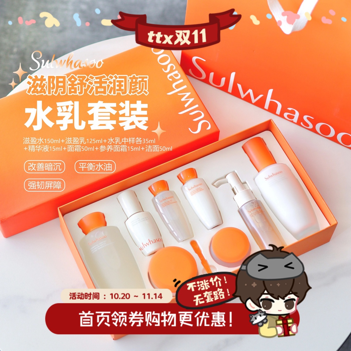 韩国sulwhasoo雪花秀滋阴水乳两件套滋润补水祛黄美白套盒护肤品