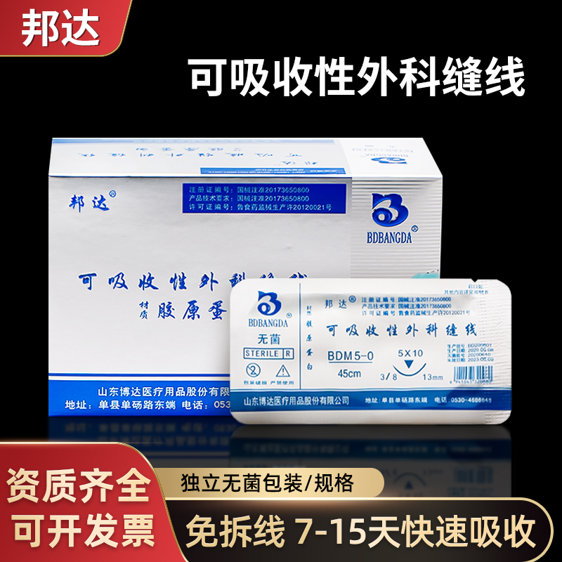 邦达快可吸收性缝线5/6/7-0 双眼皮免拆线胶原蛋白缝合线纳米无痕
