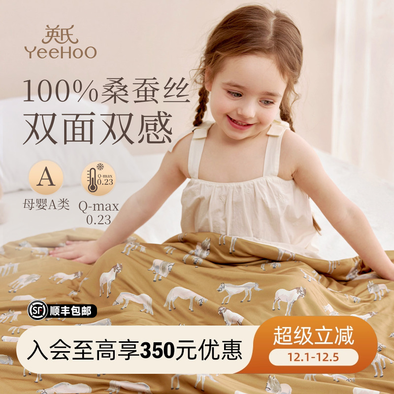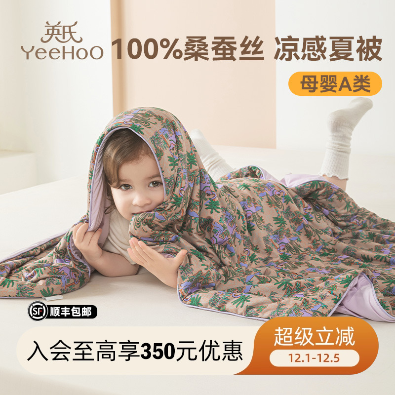 英氏儿童100%桑蚕丝被夏凉被子婴儿新生儿凉感宝宝空调丝绵被A类