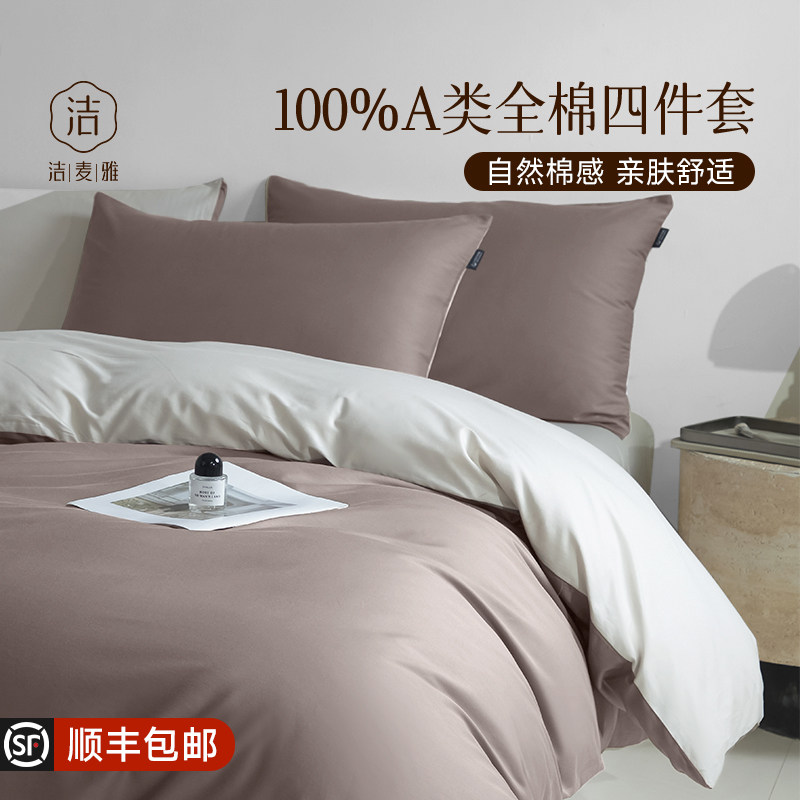 富安娜家纺床上四件套纯棉简约被套宿舍床单全棉床笠秋冬床上用品