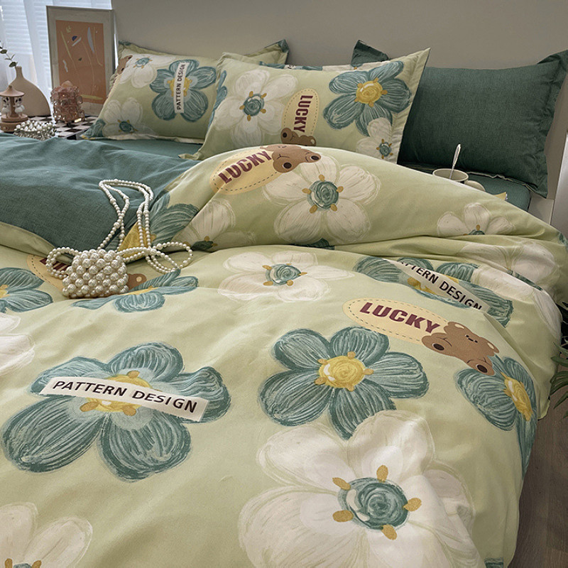 A类床上四件套水洗棉被罩母婴级床单被套床品学生宿舍三件套床笠3