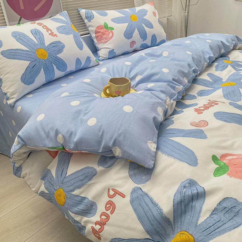 ins小清新加厚纯棉床上四件套 秋冬磨毛被套床单水洗棉宿舍三件套