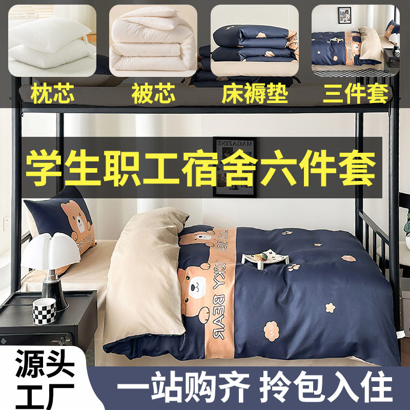 大学生宿舍床上四件套床单被套单人床三寝室上下铺被罩非纯棉全棉