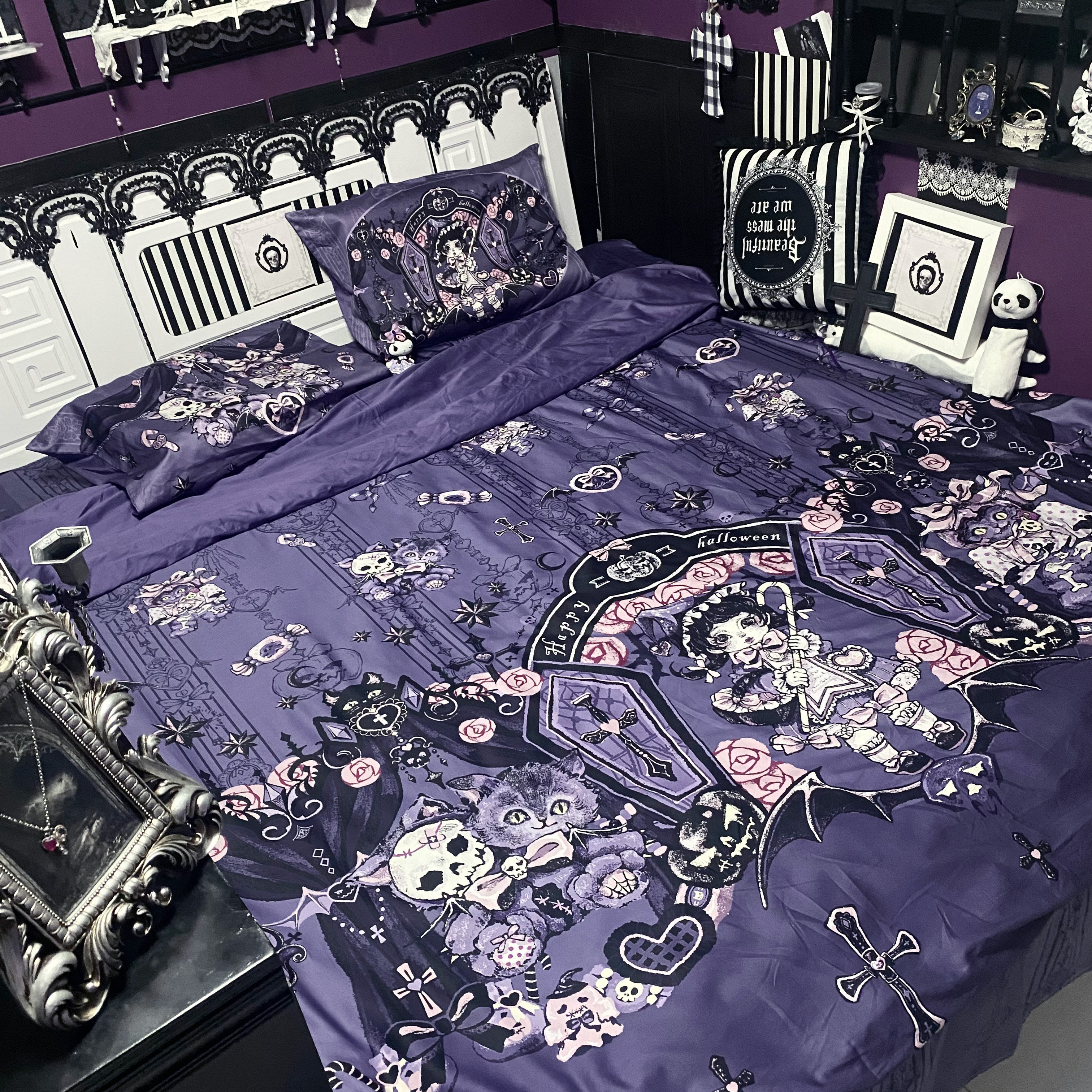 七分小眠捣蛋喵原创哥特风Lolita床单被套纯棉学生宿舍床上四件套