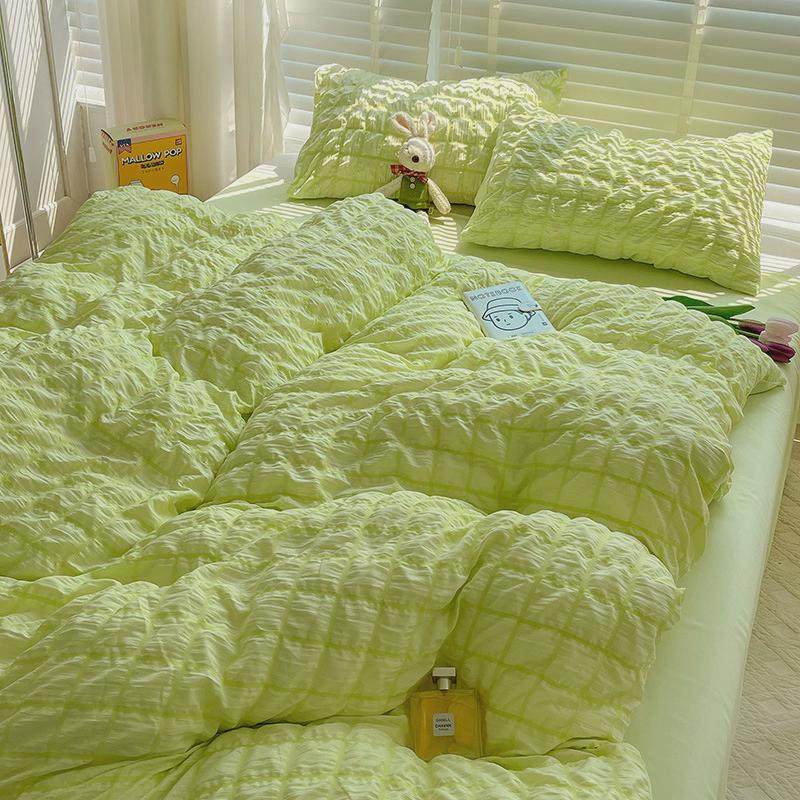 ins风韩式泡泡纱水洗棉三件套少女心被套床单学生宿舍床上四件套