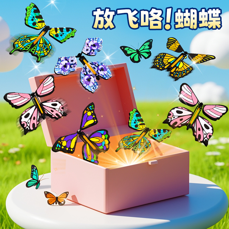 会飞的蝴蝶仿真惊喜喷花礼盒飞天竹蜻蜓露营鲁班飞鸟儿童户外玩具