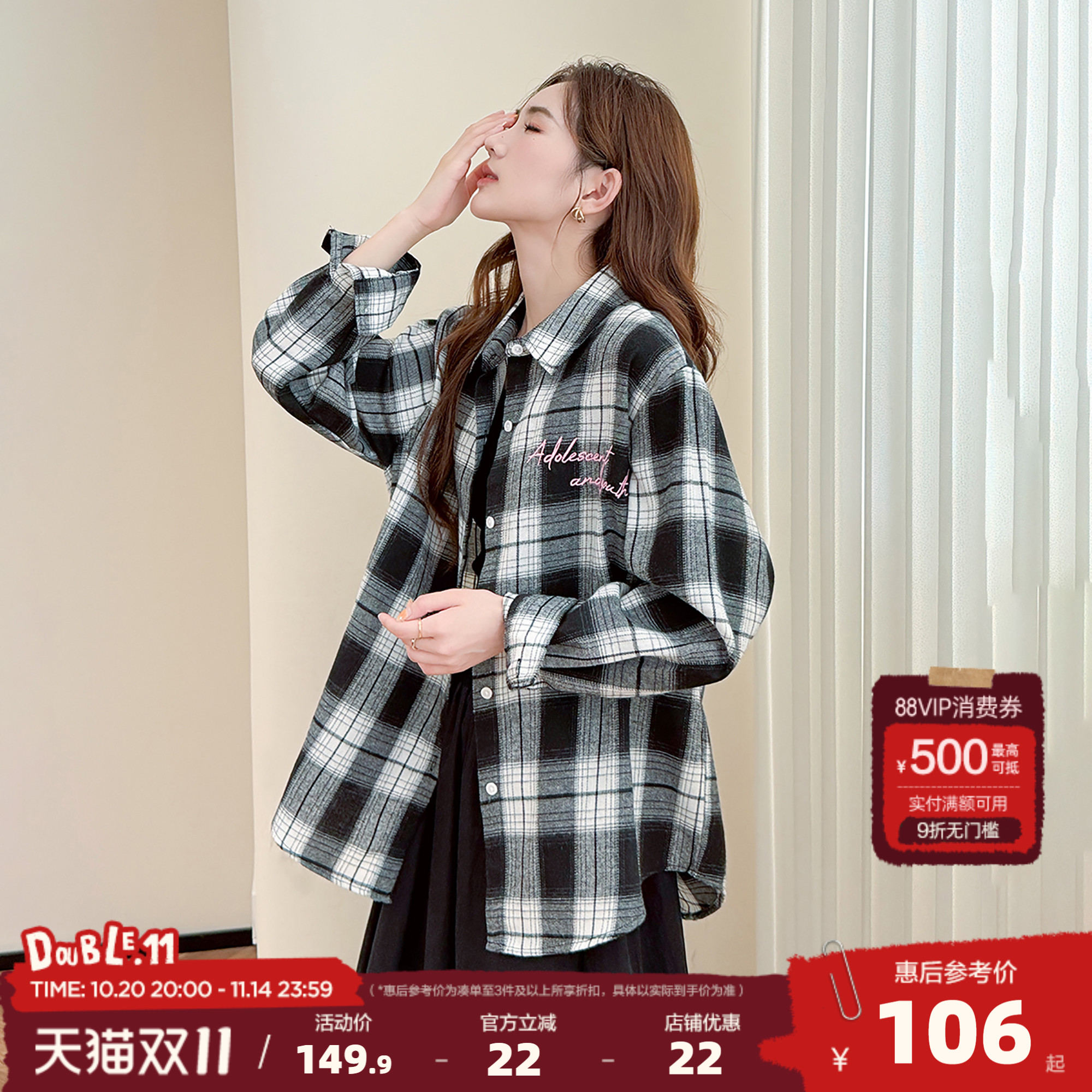 黑白格子衬衣女 长袖排行榜