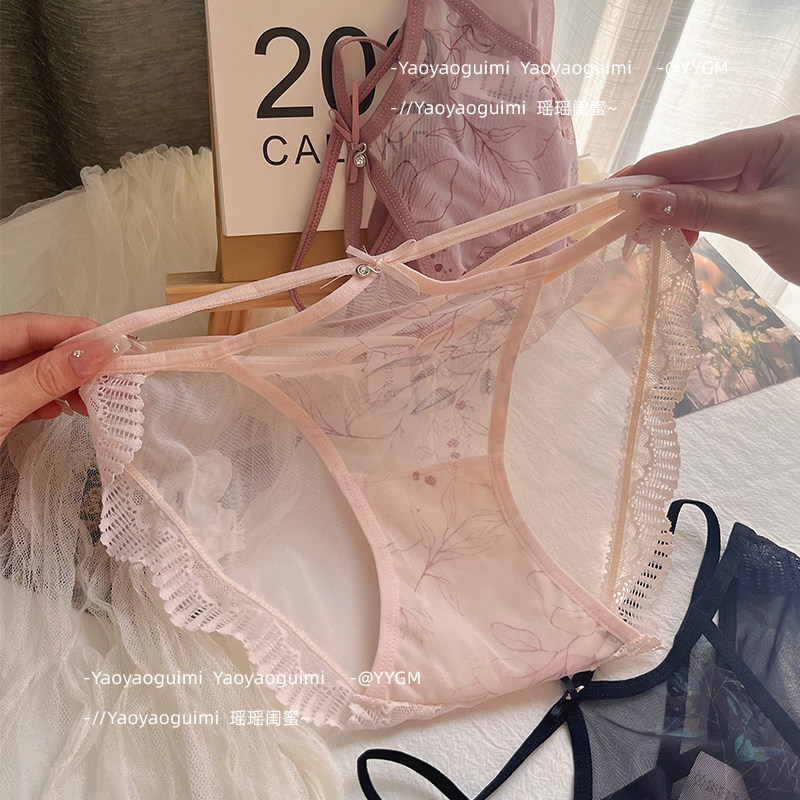 瑶瑶闺蜜秋冬性感透明蕾丝内裤女细带少女纯欲三角短裤头低腰提臀
