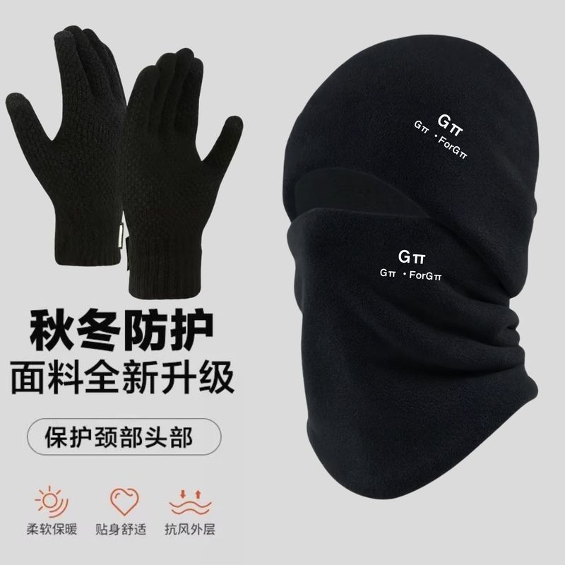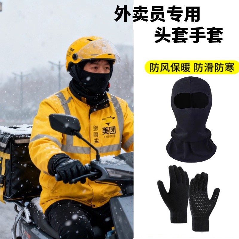 冬季外卖骑手保暖套装男士套头帽子围脖手套防风加绒护颈脖套面罩