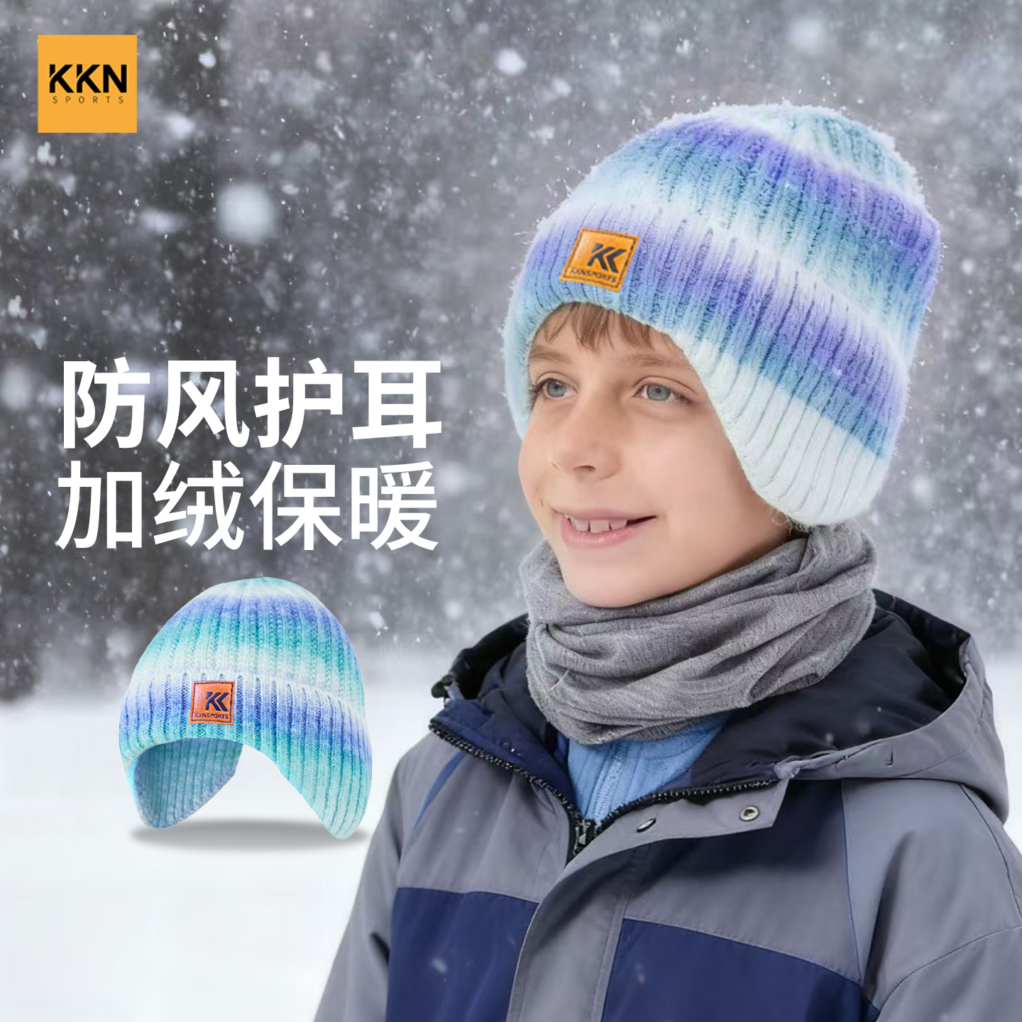KKN儿童加厚保暖帽秋冬季户外滑雪玩雪上学骑车护耳套头防寒男女