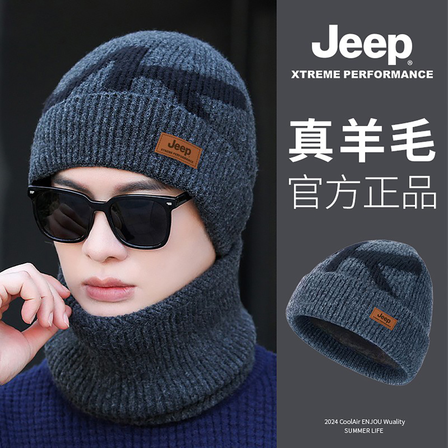 jeep吉普男士冬季毛线帽针织帽子围脖保暖防风户外骑行套头帽男冬