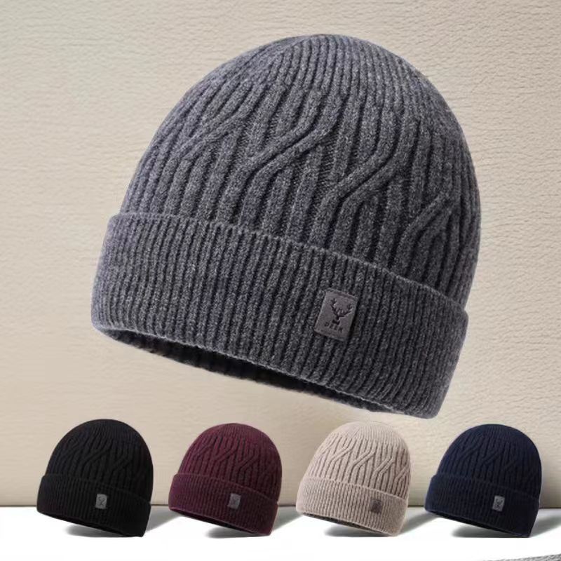 男女士情侣款冬季加绒加厚保暖毛线帽休闲舒适青年中老年套头帽子