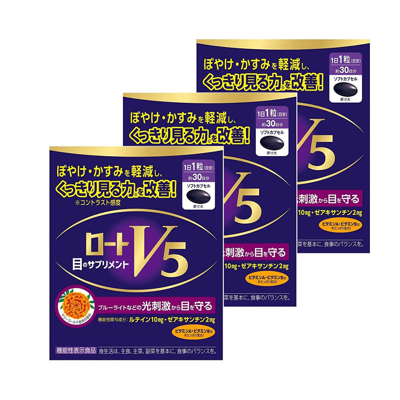 直邮进口ROHTO乐敦V5叶黄素近视眼疲劳30粒眼胶囊3盒装清晰视力
