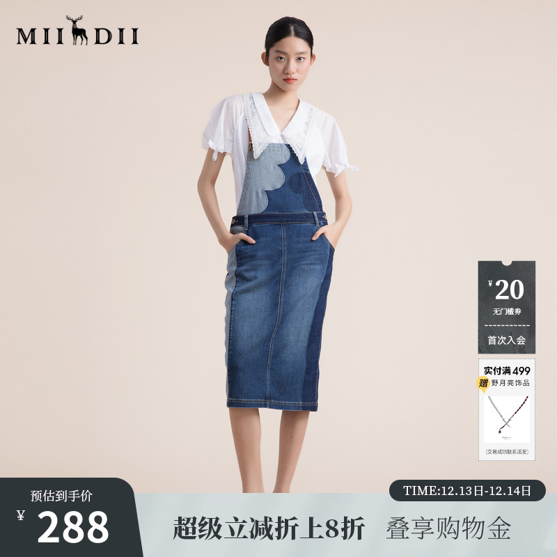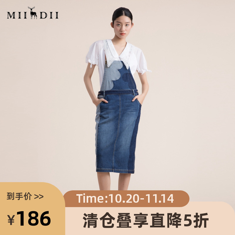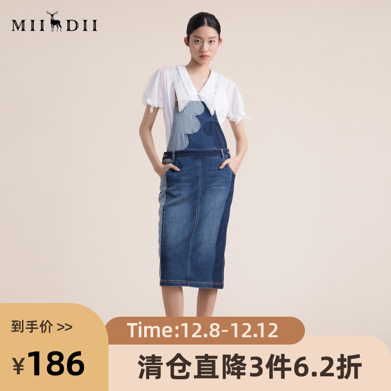 谜底牛仔背带裙2022夏季新款学院减龄贴布绣中长半裙222MB0523