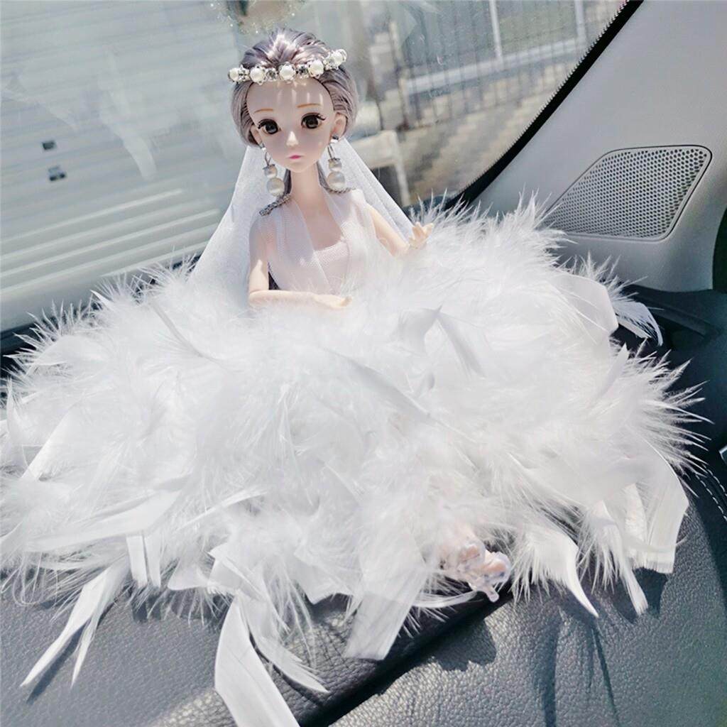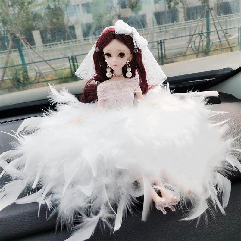女高级汽车摆件内饰车载装饰品羽毛婚纱公主娃娃礼物芭必比美少女