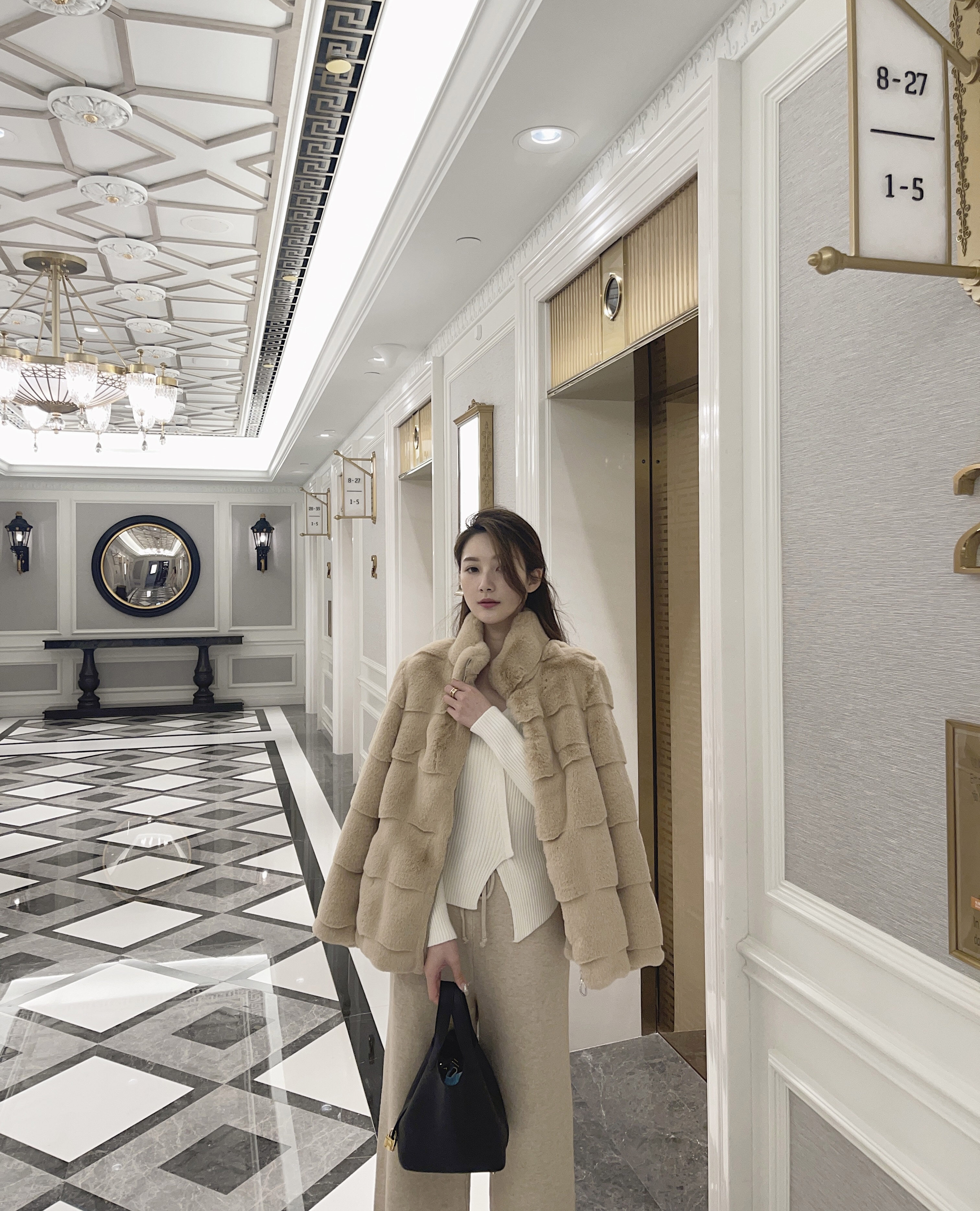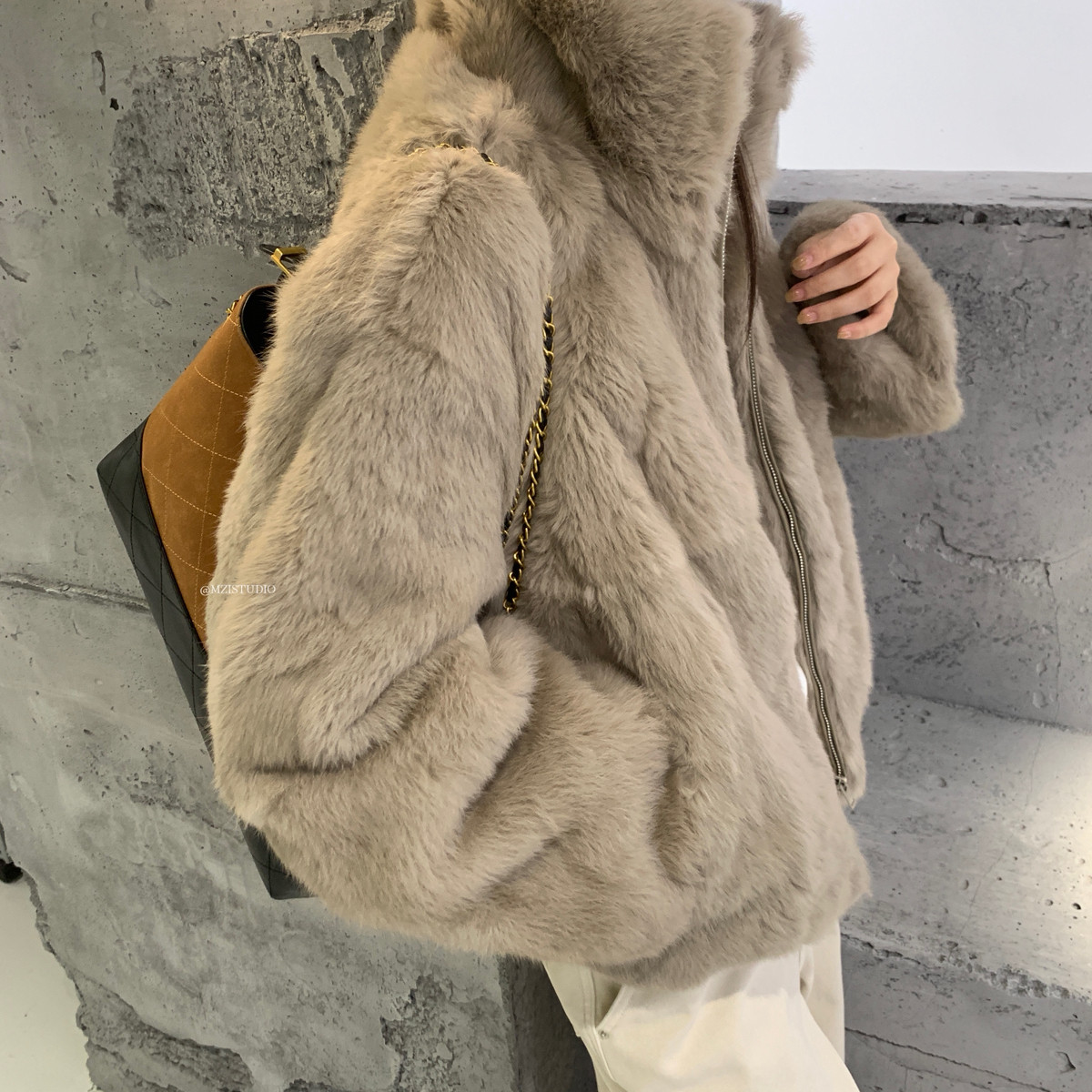 mmm collection【清仓特价】冬季仿兔毛环保皮草女立领毛毛外套