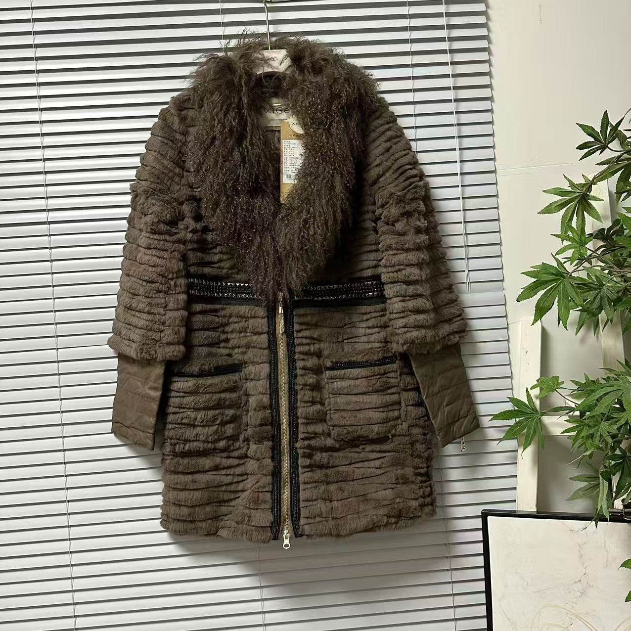 1208-35清仓!高奢皮毛一体兔毛拼羊皮羊卷毛夹羽绒皮草大衣外套