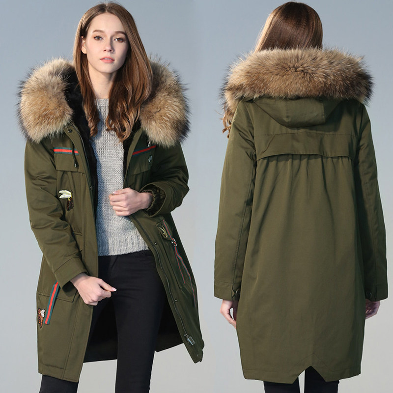 派克服女2024新款中长款韩版獭兔毛内胆可拆卸皮草外套清仓特价