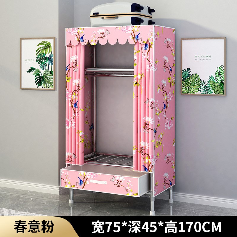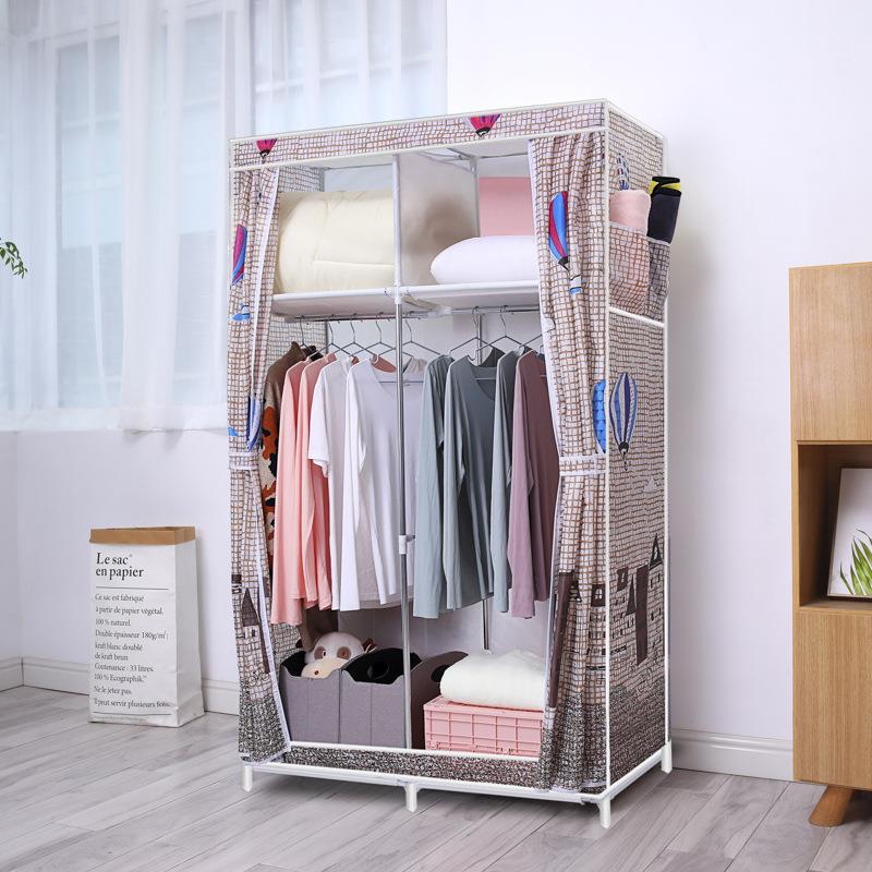 简易布衣柜全钢架家用钢管加厚加粗出租房用收纳牛津布卧室挂衣架