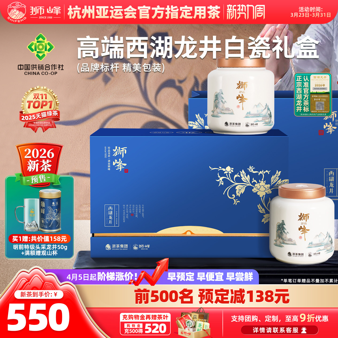 狮峰牌2026新茶上市特级明前龙井茶叶礼盒装送礼西湖藕粉春绿茶叶