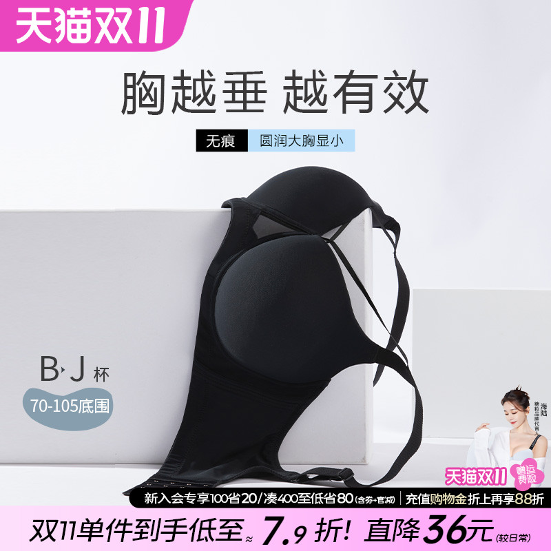 无痕内衣夏季女薄款大胸显小胸收副乳防下垂聚拢提拉背心式文胸罩