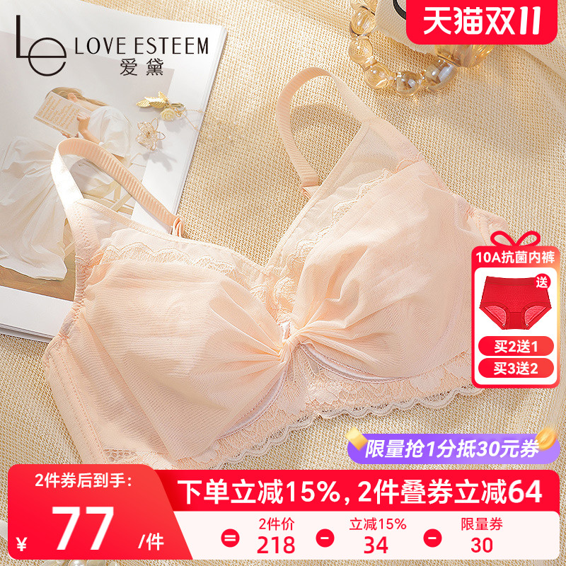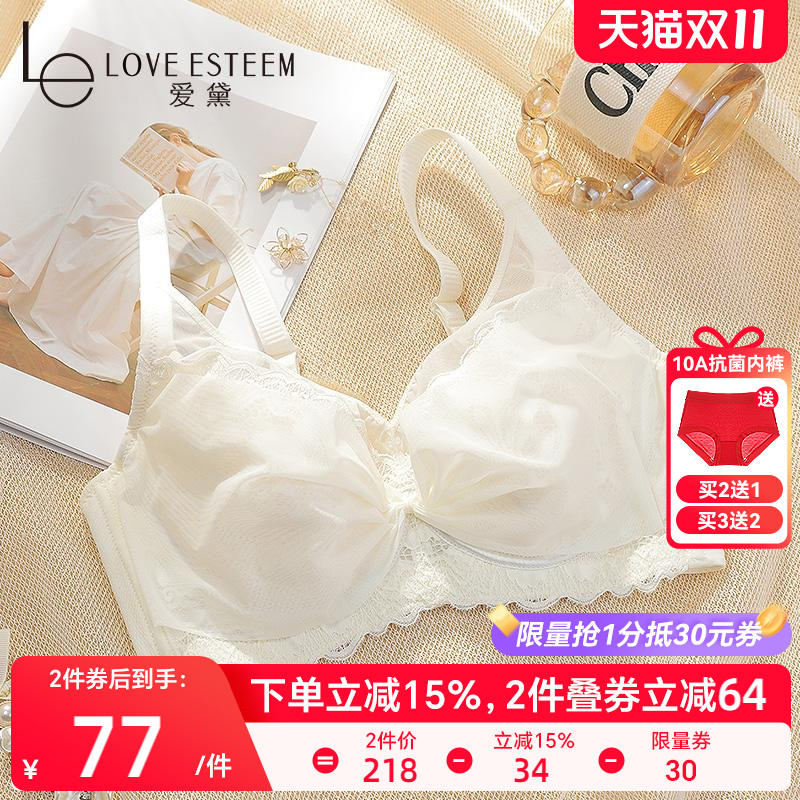 芬腾女士内衣大胸显小上托防下垂文胸蕾丝性感聚拢薄款无钢圈胸罩