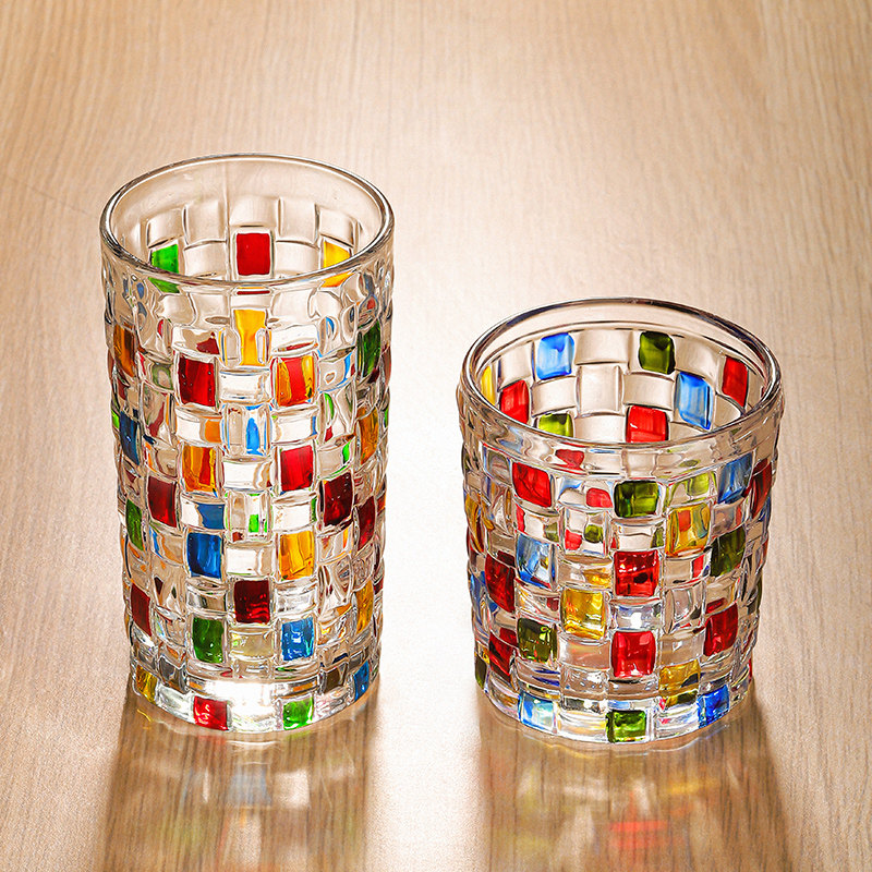 彩色耐热无铅透明玻璃杯家用套装雨点杯子茶杯啤酒杯果汁酒杯水杯