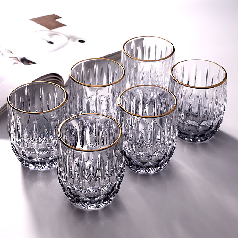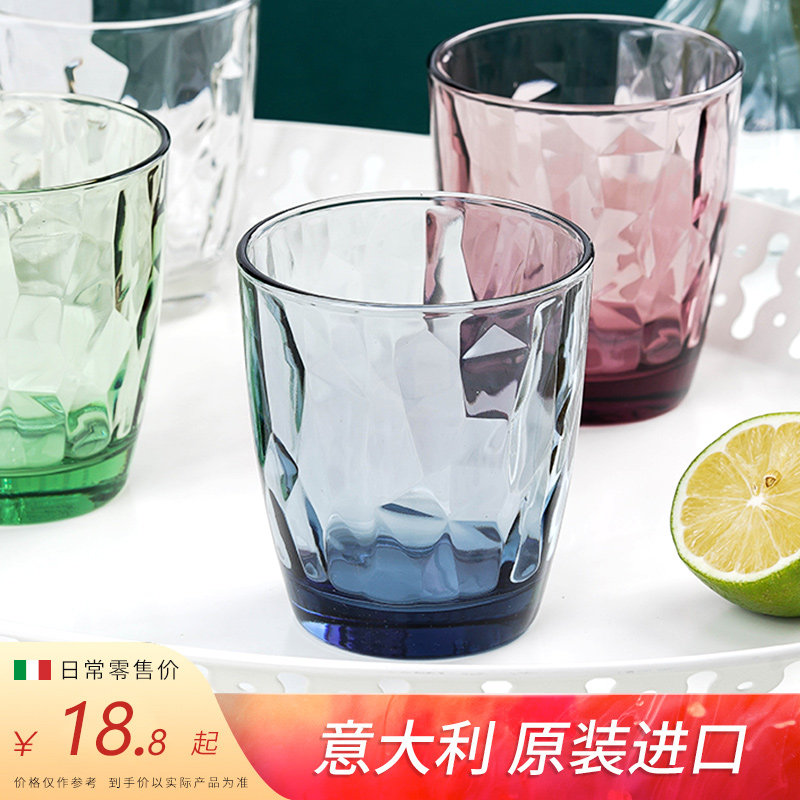 意大利进口彩色玻璃杯家用创意钻石纹水杯套装6只饮料果汁杯ins风
