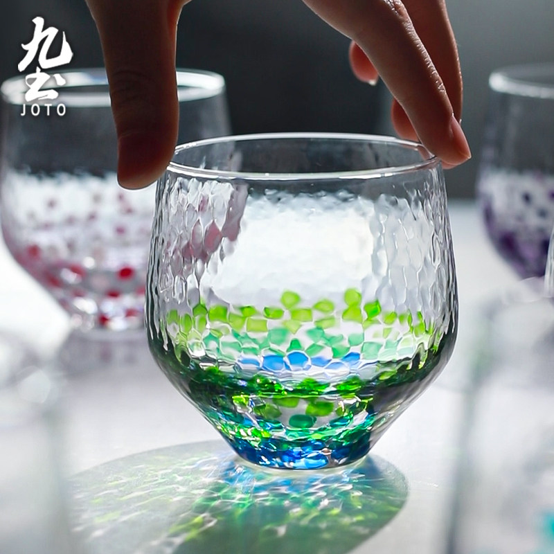 aderia津轻纯手工日本进口清酒杯家用茶杯彩色玻璃杯乔迁新居礼品