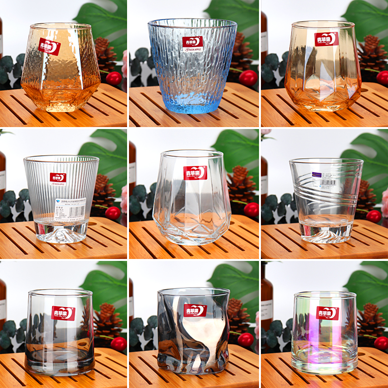 6只装青苹果彩色玻璃杯子家用耐热泡茶杯牛奶杯无盖透明玻璃水杯
