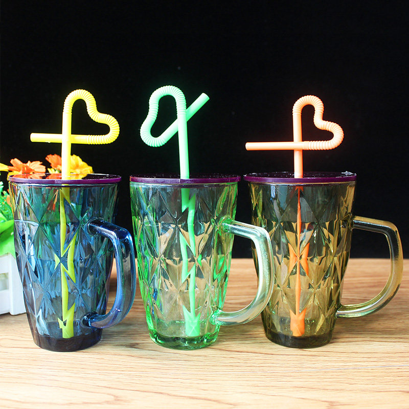 彩色玻璃杯果汁饮料咖啡杯餐饮杯盖子可印字美容美发店专用喝水杯