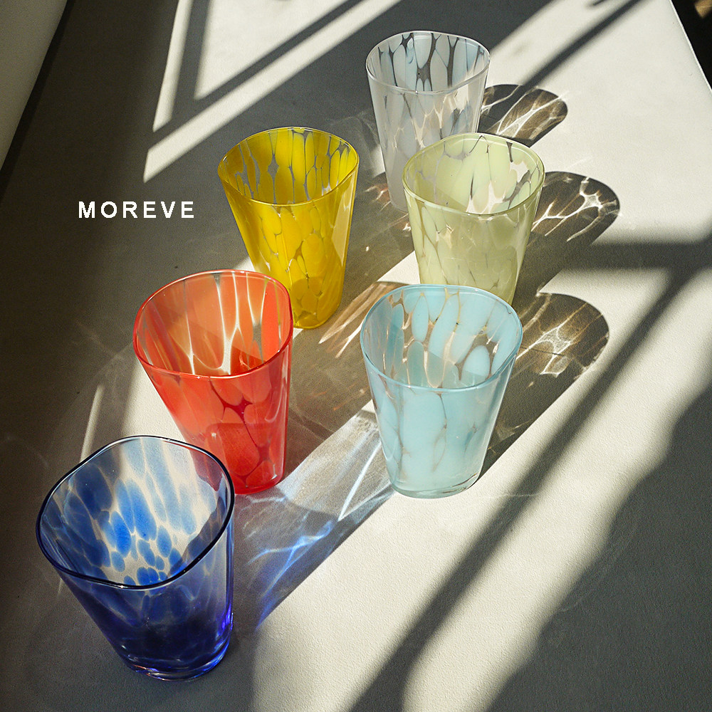 moreve早晚外贸手工丹麦不规则耐高温彩色玻璃杯牛奶杯咖啡杯水杯