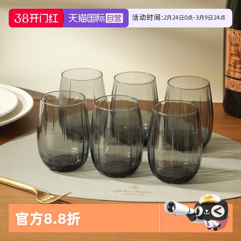 乐美雅家用透明彩色玻璃杯耐热茶水杯牛奶杯饮料果汁杯沥水架套装